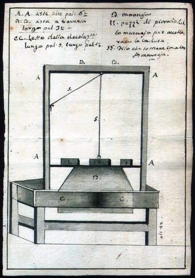 Si tratta del progetto di costruzione di un palco per gogna e decapitazione nei locali del Tribunale di Prima Istanza di Salerno, affidato all’ingegnere Matteo Amato.
