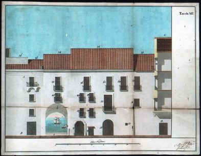La perizia consta di numerose tavole e di una minuziosa descrizione dei luoghi. Quella pubblicata è la tavola VI, che lascia intravedere il mare dalla “breccia”.