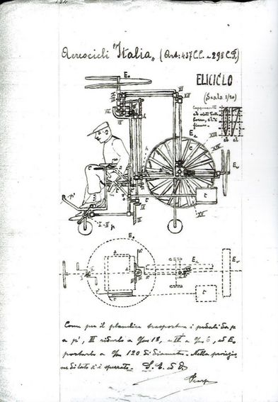 Da una memoria di Pietro Scarpelli, ricoverato nel manicomio Vittorio Emanuele II di Nocera Inferiore, il disegno di un “aeromobile”.